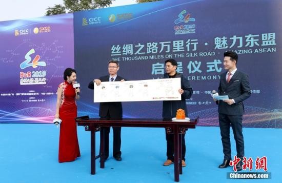 中新社北京10月18日电 (记者 应妮)大型跨国全媒体活动“2019丝绸之路万里行·魅力东盟”启程仪式,18日在北京国家体育场北广场玲珑塔下举行。据悉此行将一次性跨越陆上丝绸之路和海上丝绸之路沿线国家和地区以及重要节点城市。