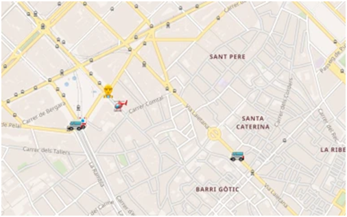 除此之外,美国科技网站“科技关键”(TechCrunch)还提到了加泰罗尼亚示威使用的其他“战术”。报道称,加泰罗尼亚示威者还开始使用与香港示威活动中出现的被称为“暴徒好帮手”地图应用“HKmap.live”类似的APP。据报道,这款APP把Emoji表情叠加在地图上,以实时展示街道封闭情况和警察位置。
