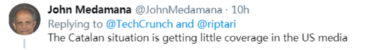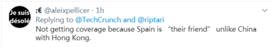 另外,在TechCrunch报道评论区,有多位欧美国家网友表示,自己看到的关于加泰罗尼亚示威活动的报道很少。