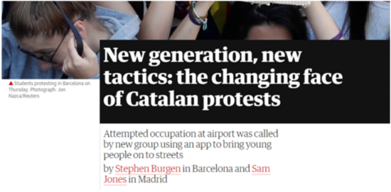 《卫报》还详细描述了一些加泰罗尼亚年轻示威者接到这条信息时的反应。21岁马克和安娜马克表示,接到信息时,二人正在加泰罗尼亚广场上参加示威活动。“我们的计划是让机场瘫痪,以表达我们对正在发生的事情的不满。”马克说。随后,与其他人一样,经过5个小时的漫长路程后,马克及安娜抵达了机场。