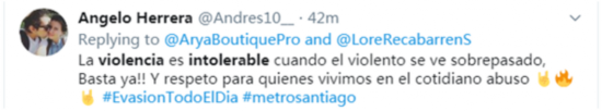 “当暴力继续升级,这些暴力行动已经令人无法容忍。够了!尊重一下我们这些正常生活的人吧。”