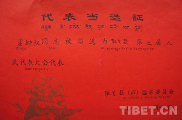 1981年8月25日,霍钟权曾被选为西藏那曲班戈县第三届人民代表大会代表,图为他一直珍藏着的代表证