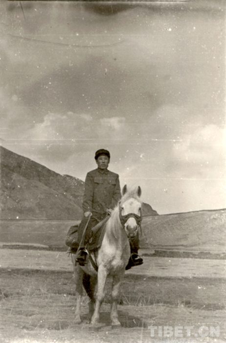 图为1965年,霍钟权在西藏那曲县工作时骑马下基层调研