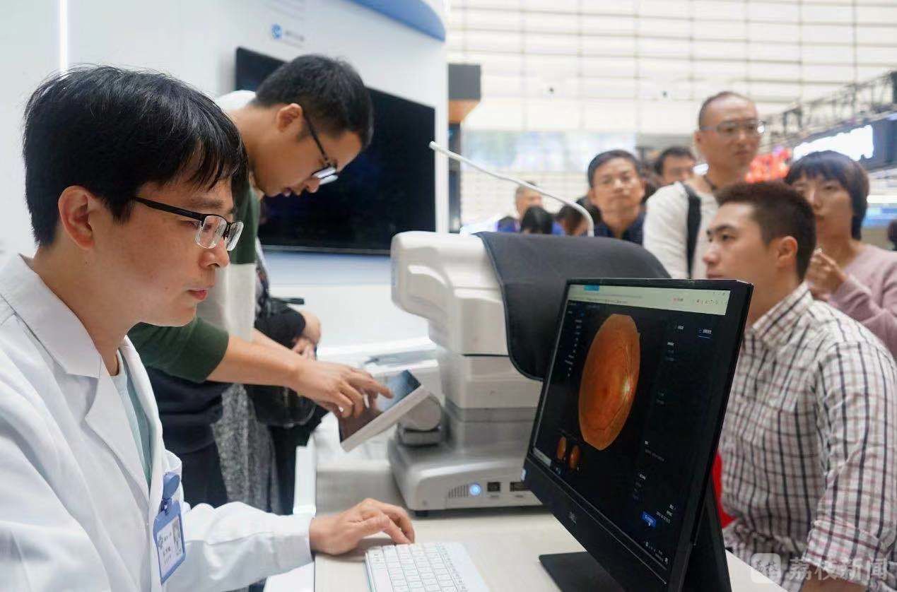 在腾讯的展区,很多人排成长队,等待筛查眼底疾病和评估帕金森症。据介绍,腾讯带来的“腾讯觅影”眼底疾病筛查AI系统,一次眼底检查只用几分钟,不仅可以发现眼睛疾病,还可以捕抓糖尿病、高血压等多种全身性疾病的蛛丝马迹。目前,该系统已和全国30多家医院进行了联合验证,并在一些基层医疗系统试点。