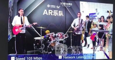 当我们谈论5G的时候在谈论什么?中国移动在现场给出了关于5G的文艺答案:5G +AR乐队。爱摇滚、爱音乐,你也可以成为最酷的鼓手。只要坐到展台上,你就可以和画面中的乐队同台演出。躁起来吧,5G带来的文艺生活。