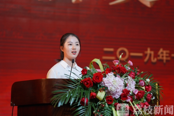 艺术设计学院二年级学生胡鑫,作为学生代表在大会上发言,她说,与几位事业有成的学长交流了求学经历后,坚定了她今后学习和发展的信心,祝愿学校更辉煌!