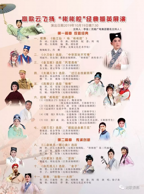 10月19日晚上,高歌云飞扬“彬彬腔”经典撷英展演在无锡市人民大会堂精彩上演,本次展演共分致敬经典和传承创新二个篇章。