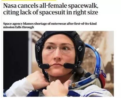 可有些尴尬的是,其实今年3月时美国宇航局就曾打算实现首次“全女性太空行走”的,可由于缺少符合女性宇航员身材的太空服而未能实现。这也一度引发了社交媒体上对NASA歧视女性宇航员的争议。