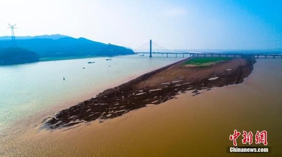 资料图:2019年10月10日,江西九江湖口县,往日被湖水淹没的滩涂大面积显露出来。7月下旬以来,江西降雨量比多年均值偏少近6成。李学华 摄