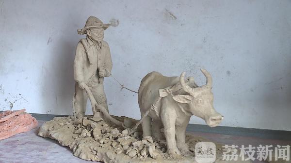 有时灵感一来,刘洪海抓起泥巴就捏。为了创造一件作品,他经常通宵达旦,茶饭不思,直到满意为止。刘洪海还经常自己摆姿势,让别人帮忙拍照记录下来,然后自己揣摩。 这件刚刚完成的《纳鞋底》作品,反映了农村日常生活,十分逼真。