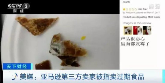 CNBC的数据显示,在亚马逊平台的在售商品中,食品占到大约58%。其中有很多用户投诉称,自己从第三方卖家购买的辣椒酱、牛肉干、麦片、婴幼儿配方奶粉等商品已经超过了保质期,“味道闻起来令人作呕”。