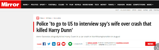 英国《卫报》等多家主流媒体5日报道,一名美国驻英国外交官的妻子驾车撞死一名19岁英国青年,而后以外交豁免权离境,逃避英国警方调查。报道说,那名美国外交官家属8月27日驾车逆行,在北安普敦郡的克劳顿空军基地附近撞上骑摩托车的英国青年哈里·邓恩。邓恩不治身亡。为讨回“公道”,哈里的父母于10月13日抵达美国。当地时间10月15日下午,他们在美国白宫见到了特朗普。但哈里的父母表示,会面中特朗普并未答应将萨库拉斯送回英国。