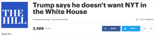 据美国《国会山》报网站报道,美国总统特朗普当地时间21日表示,他不希望白宫再有《纽约时报》出现,言下之意在暗示将终止订阅该刊物。