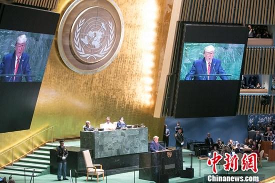 资料图:当地时间9月24日,美国总统特朗普在第74届联大一般性辩论上发言。