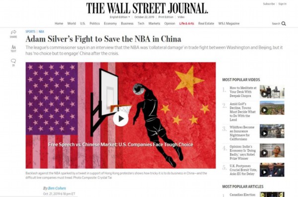 NBA新赛季22日开打,《华尔街日报》是在开打前晚采访的肖华,并称,这是后者近期对当下形势作出的最为详尽的评论。