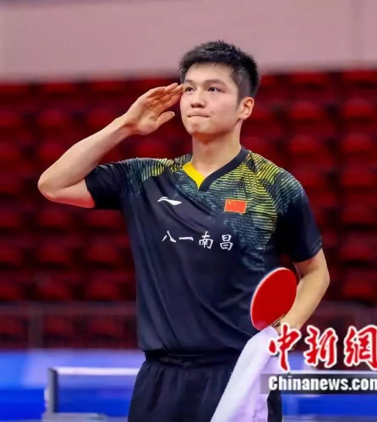 樊振东赛后向看台敬礼。中新社记者 张畅 摄