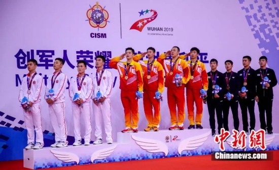 首次纳入军运会赛场的竞技体操和乒乓球项目中,中国队分别在男子个人全能决赛以及男团比赛中夺金。