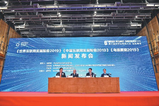 昨日下午,《世界互联网发展报告2019》《中国互联网发展报告2019》《乌镇展望2019》新闻发布会在乌镇互联网国际会展中心网剧场举行。 新京报记者 吴江 摄
