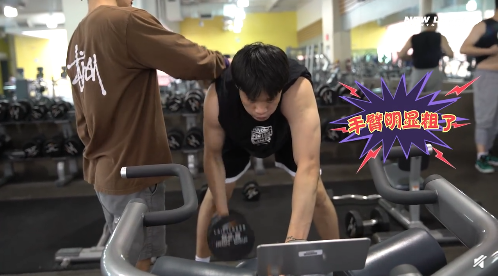 视频展示的第一部分的内容是力量训练,丁彦雨航在睢冉和训练师的陪同下一起来到健身房训练,在训练师的不断鼓励之下,丁彦雨航非常认真地举着哑铃和杠铃,从视频中来看,他的手臂明显长粗了,变得更加强壮,手臂已经成为了“麒麟臂”。