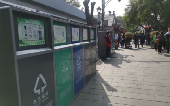 一个月前,南锣鼓巷的垃圾桶都由原来简单的垃圾桶换成了四分类垃圾桶。