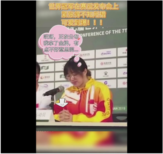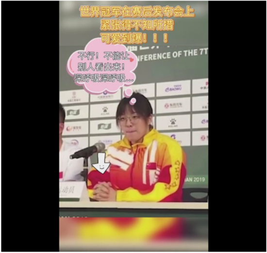 从《人民日报》官方微博22日转发湖北日报的视频中可以看到,夺得冠军的吴惠敏在发布会上紧张得不知所措,不时低头、搓手、抿嘴、深呼吸……