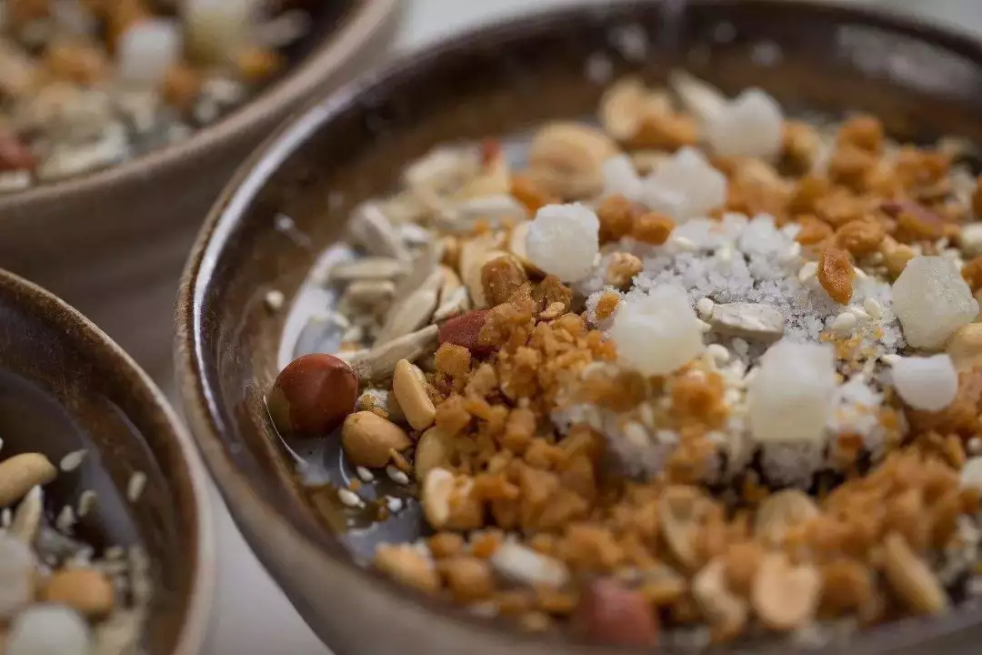 撒上些瓜子仁、花生仁、白芝麻