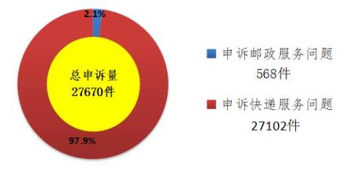 中新网10月23日电 23日,国家邮政局网站发布关于2019年9月邮政业消费者申诉情况通告,通告称,2019年9月,国家邮政局和各省(区、市)邮政管理局通过“12305”邮政行业消费者申诉电话和申诉网站共处理消费者申诉27670件。申诉中涉及邮政服务问题的568件,占总申诉量的2.1%;涉及快递服务问题的27102件,占总申诉量的97.9%。