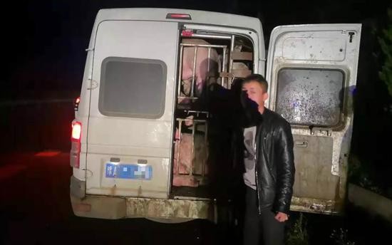 车主将后排座位全部拆除,装上铁笼子,拉了20余头生猪