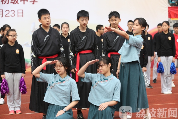 今天(10月23日)上午,南京市第十二初级中学第52届运动会迎来花式开幕。该校初一到初三共36个班代表36座城,用他们自己独特服饰和舞蹈等元素展现每座城市独具魅力的故事。