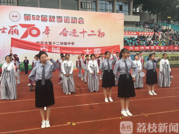 南京市第十二初级中学德育处副主任李欣媛说:“开幕式主要围绕新中国成立70周年以来,每一座城市站起来、富起来和强起来的过程,36个班级代表36个城市,用他们自己独特的方式去讲述着每座城背后生长的故事。同时,举行运动会让每一个学生展示才能,展现班级的凝聚力和精神风貌。”