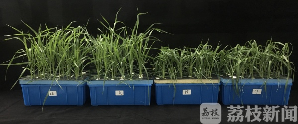 左边两盆为健康开心的小麦,右边两盆为低温“感冒”的小麦