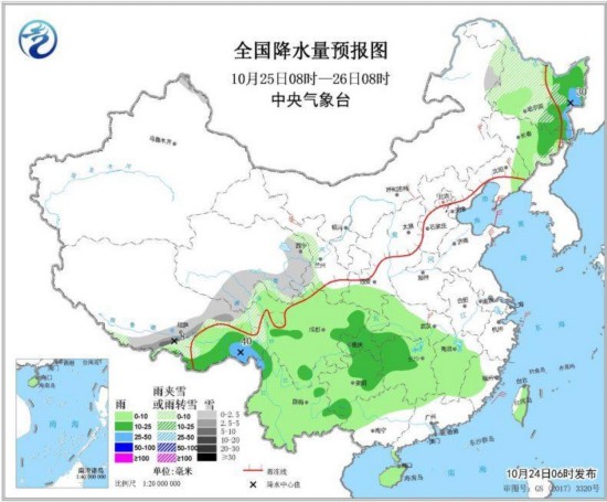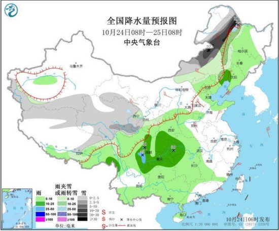 图4 全国降水量预报图(10月24日08时-25日08时)