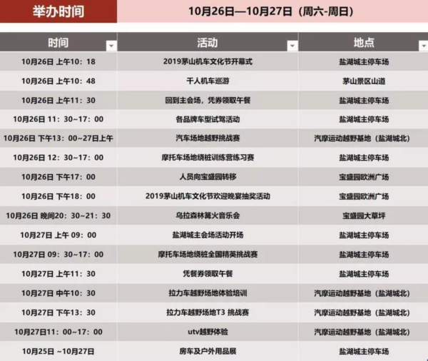 10月26日,2019“梦骑士杯”中国茅山汽摩运动文化节暨房车露营嘉年华将在茅山旅游度假区激情上演!大美金坛,动感茅山,一起看秋风梳理山岳,听轰鸣传遍山野。从越野到机车巡游,超酷的轰鸣声为茅山奏响一曲秋日的交响乐!