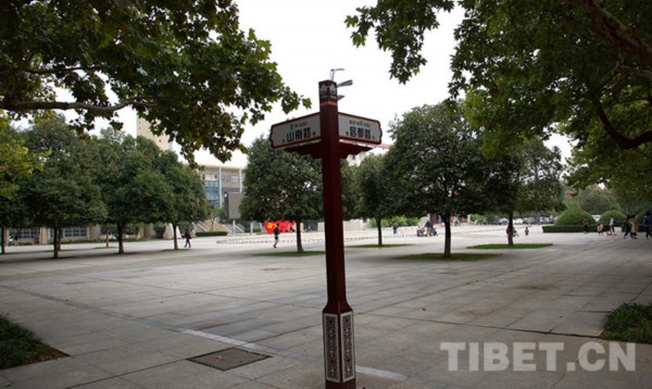 图为西藏民族大学校内路牌,通往昌都路、山南路 摄影:王媛媛