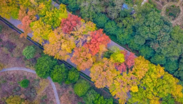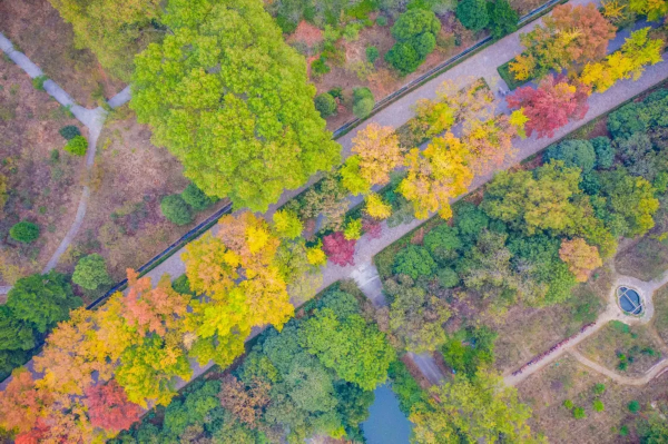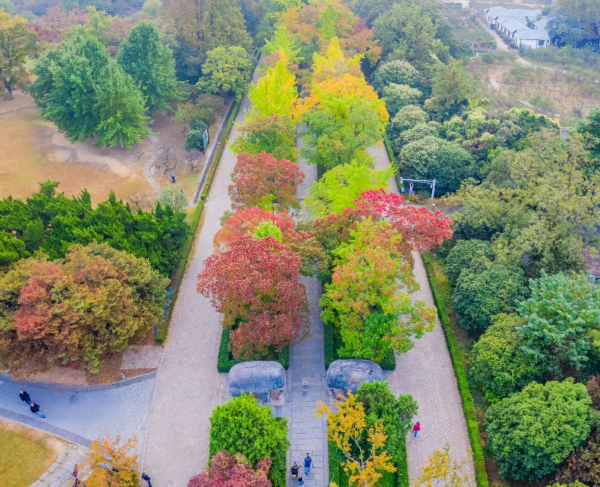 近日,南京明孝陵景区秋意渐浓,色彩斑斓的树叶将明孝陵石象路装点得分外美丽,吸引众多市民和游客前来观赏、拍照。