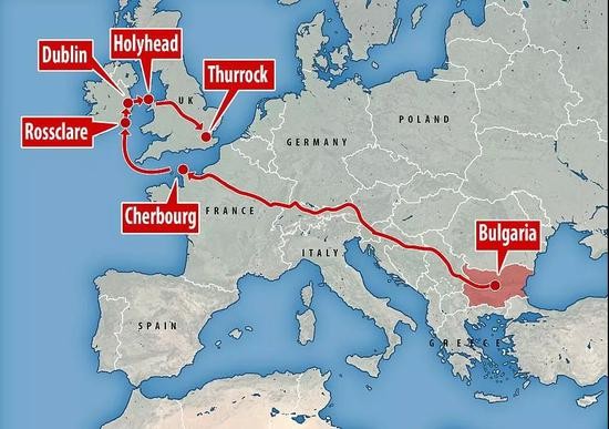 报道称,警方认为,这辆卡车来自保加利亚,3天前(10月19日)经由威尔士的霍利黑德(Holyhead)进入英国。据推测,卡车行进路线可能是先经爱尔兰南部绕行至都柏林,再搭乘轮渡进入北威尔士。