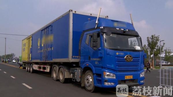 此次比赛在苏州相城区高铁新城的智能网联汽车测试道路区域进行,共设置行人探测、掉头行驶等11个必备科目,一键召车、到站上下客等5类场景科目以及信号灯识别、交叉路口防碰撞的挑战科目。来自全国各地的21支智能驾驶车队,分为物流重卡、乘用车、公交车等组别参赛。这辆大型物流车可以在载重货物超20吨的情况下进行自动驾驶。