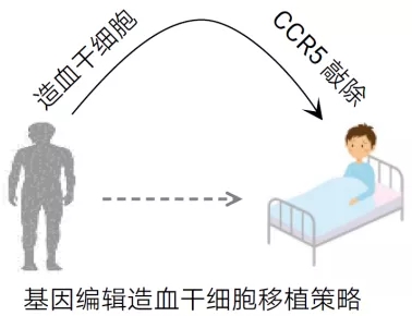 2007年,患有白血病合并艾滋病的“柏林病人”在接受具有CCR5-Δ32突变的造血干细胞移植后,实现了“功能性治愈”。这位名叫蒂莫西·布朗的病人同时患有艾滋病和白血病,2007年他在柏林接受放射疗法和造血干细胞移植,具有CCR5-Δ32突变的造血干细胞在成功移植后能在体内分化为具有CCR5-Δ32突变的T细胞,因此这种治疗方法不仅能治愈白血病,同时也治愈了艾滋病;2019年,“伦敦病人”案例的证明此前“柏林病人”并非个例。因此,通过基因编辑敲除成体造血干细胞上CCR5基因,再将编辑后的细胞移植到艾滋病患者体内有可能成为“功能性治愈”艾滋病的新策略。