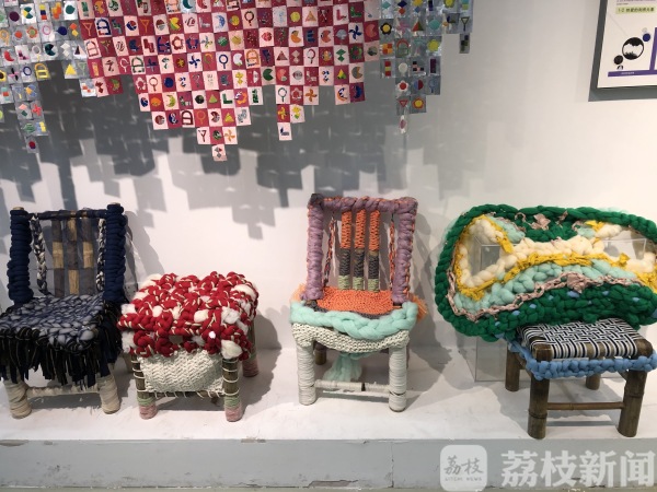 一把普通的椅子,当它披上了一件色彩艳丽、造型奇特的“衣服”后,立即会变成心灵治愈的“神器”。中国美院艺术设计学院老师王书莹介绍,这件作品由中国美院学生和台湾学生用了三天时间共同设计,是两岸学生的智慧之“和”,“本身孤零零的凳子,它跟服装有一个集合,在人的穿着和坐的过程中,给到一种安全感的包裹。”