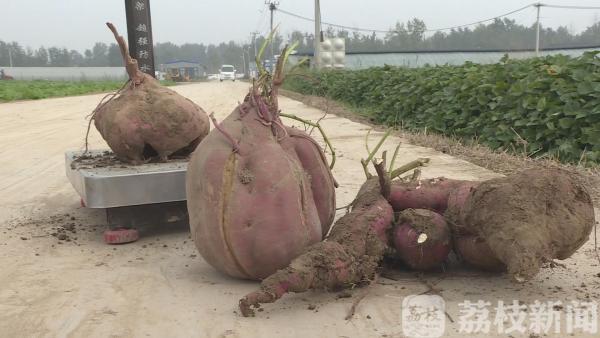 昨天上午,在泗阳县325省道边上的美润蔬菜种植基地里,记者见到了这块“神奇”的土地。12.5斤!12.9斤!16.4斤!今年意外收获的这个“宝贝”,吸引了左邻右舍前来观赏,每个人都惊叹不已,不少人都表示从没有见过这么大的红薯。