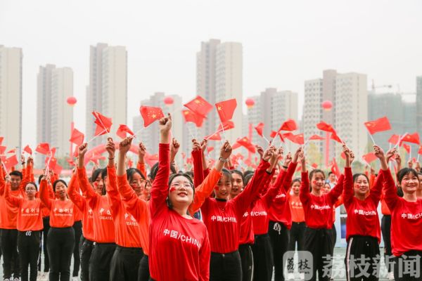“我爱你春天蓬勃的秧苗,我爱你秋日金黄的硕果,我爱你青松气质,我爱你红梅品格……”乐曲进行到高潮处,全场药大师生挥舞着手臂与红绸深情放歌,《我爱你中国》的旋律响彻体育场。他们把对祖国的声声祝福化作律动的音符,一起唱响中国梦;他们把对祖国的无限眷恋化作优美舞姿,一起为祖国祈福,悠扬的旋律久久回荡在药大校园的上空。