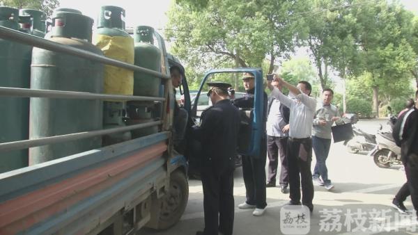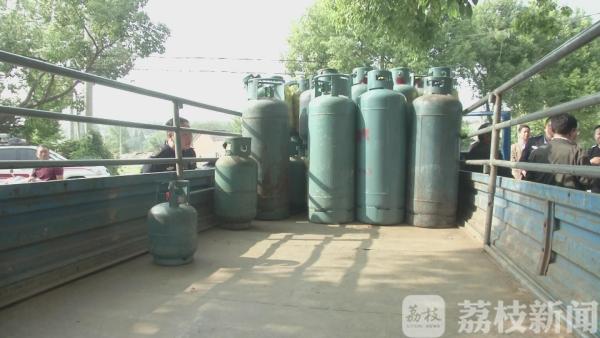 10月24日,扬州市住建、公安、交通多部门联合执法时,发现一辆运输液化气罐的货车不仅没有手续,车上不少钢瓶过期未年审,存在巨大安全隐患。