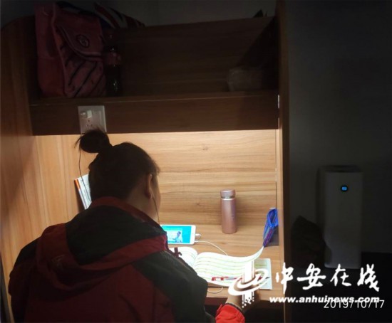 10月17日晚12时,安徽大学江淮学院的一宿舍走廊内,新闻学专业的陈琳收起考研资料,折叠好简易板凳,准备回宿舍休息。为了备战考研,陈琳每天都要“转战”好几个地方。早上7点在图书馆门前背书,等候开门抢座,晚上10点图书馆关门,再转到教室抢座学习,教室晚上11点关门后,再回到宿舍学习。