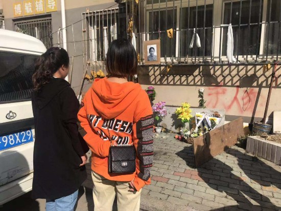今日蔡某某家陆续有大连市民前来祭拜。新京报记者 王昱倩 摄