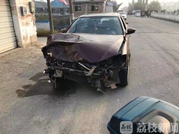 一辆轿车沿分蒋线由东向西行至新洋桥,与沿新洋村村道由南向北行驶的另一辆轿车发生碰撞,使得该车车尾180度大拐弯撞路边一座楼房,导致楼房坍塌三分一。