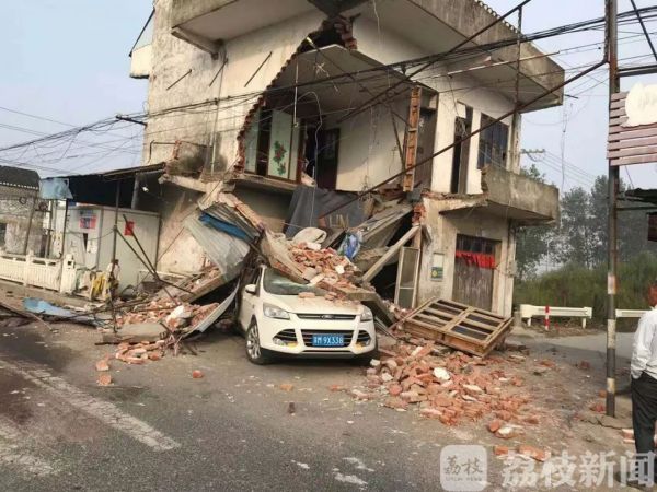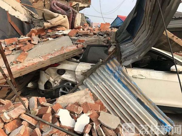 10月25日上午7时许,在泰兴市黄桥镇分蒋线13公里(新洋桥)附近发生两车路口相撞,其中一车失控撞塌路边楼房。