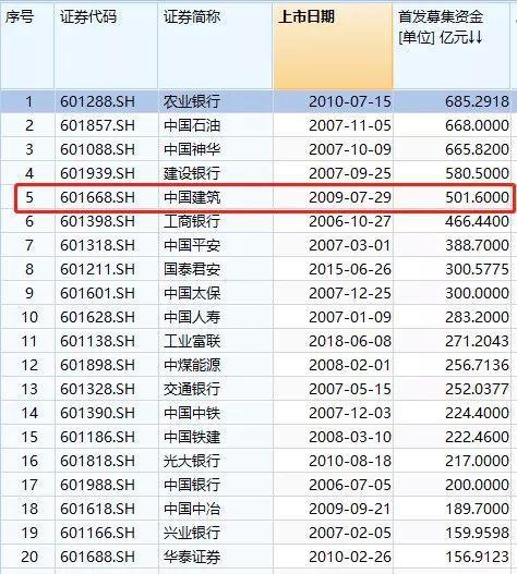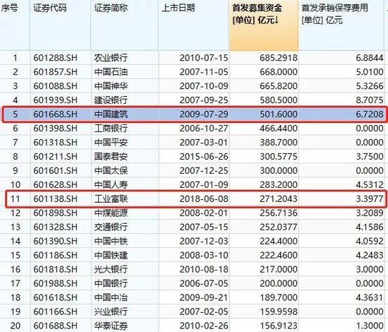 8、主承销商是中信建投证券。2009年中国建筑募资502亿元,承销费用为6.72亿元;2018年6月工业富联募资271亿元,承销费用为3.4亿元。