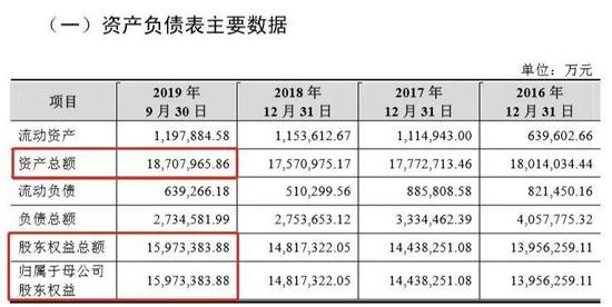 招股书显示,2019年1-9月,营业收入250.02亿元,净利润95.2亿元;2016-2018年,营业收入分别为262.58亿元、295.55亿元、311.58亿元;净利润分别为79.03亿元、90.53亿元、102.48亿元。