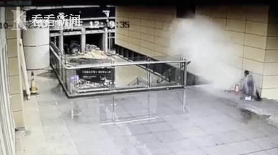 10月16日,在江西宜春市万载县某商业街,2个孩子放学后路过商场竟对灭火器打起了主意,他们一人拿起一个灭火器就开始“火拼”,把干粉喷得满地都是。