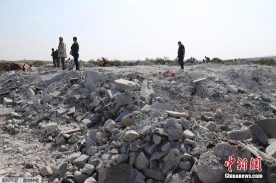 美国总统特朗普27日在白宫宣布,极端组织“伊斯兰国”最高头目阿布·贝克尔·巴格达迪已在美军突袭行动中自杀身亡。图为军事行动过后民众站在废墟中。
